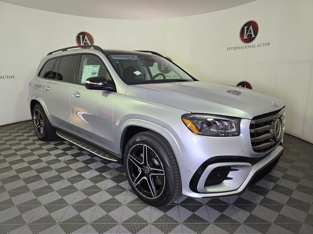 Cirrus Silver Metallic 2026 Mercedes-Benz GLS GLS 450 4MATIC® 4MATIC® 9-Speed Automatic 3.0L I6 6-Seat Configuration, AMG® Bodystyling, AMG® Brushed Stainless Steel Sports Pedals, AMG® Floor Mats, AMG® Line Exterior, AMG® Rear Apron, AMG® Side Skirts in Body Color, AMG® Sport 3-Twin-Spoke Steering Wheel, Apple CarPlay®/Android Auto®, Exclusive Trim Package, Front and Rear Flared Wheel Arches in Body Color, Heated front seats, Heated Rear Seats, Heated Steering Wheel, High-Gloss Black Elements, Large Front Brake System, Matte Black Roof Rails, Night Package, Power Liftgate, Power moonroof: Panorama, Radio: Burmester® Surround Sound System, Rapid Heating Front Seats, Trailer Hitch, Ventilated front seats.